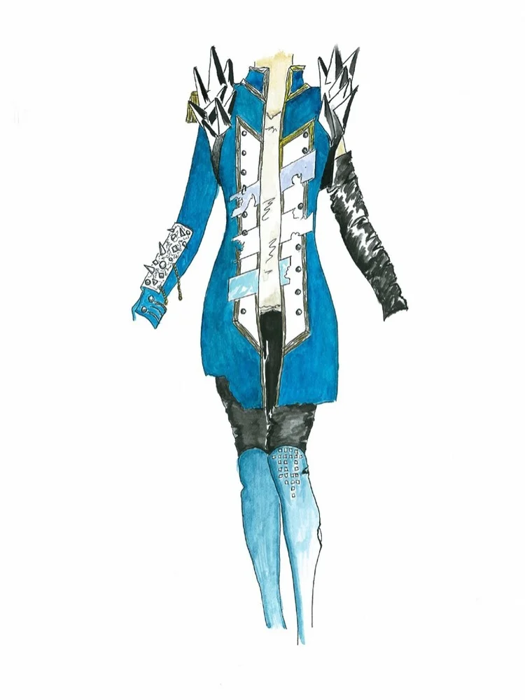 This costume was designed for the lead of a band signed to Dream Records. It was blue wool with denim metal studded shin guards. #musicvideo #costumedesign
